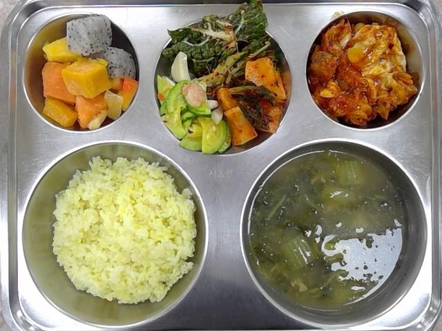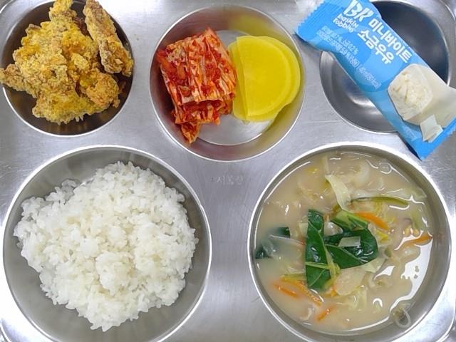 * 석식: 쌀밥(자), 나가사끼짬뽕, 뿌링클순살치킨,단무지, 배추김치, 솔트밀크아이스크림