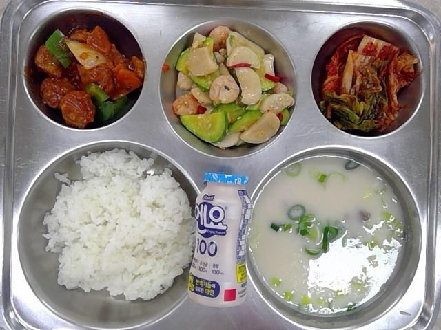 * 조식: 쌀밥, 사골조랭이떡국, 미트볼조림, 새송이애호박볶음, 배추김치, 엔요요구르트