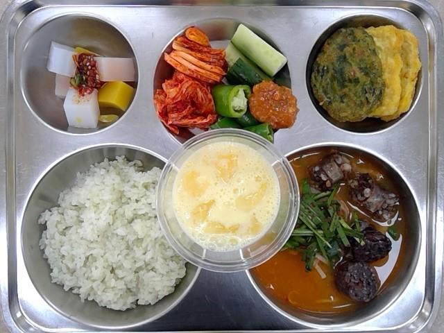 * 중식: 연잎쌀밥, 순대국, 삼색청포묵+양념장, 동태전, 오징어부추전, 배추김치, 오이,풋고추(자), 망고라씨
