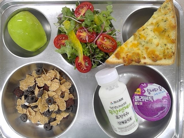 * 조식: 모듬시리얼+유기농우유, 방토그린샐러드, 크로크무슈, 사과, 힘내라 톡톡 젤리