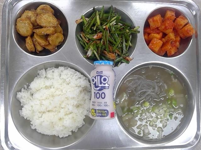 아침:쌀밥,한우소머리국밥,완자어묵조림,부추무침,깍두기,엔요요구르트