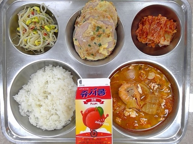 * 석식: 흰밥, 순두부찌개, 햄계란전, 콩나물무침, 배추김치, 자두맛음료