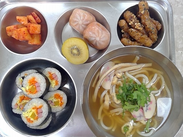 * 중식: 김밥, 우동, 맛동산탕수육, 김치왕만두, 깍두기, 골든키위
