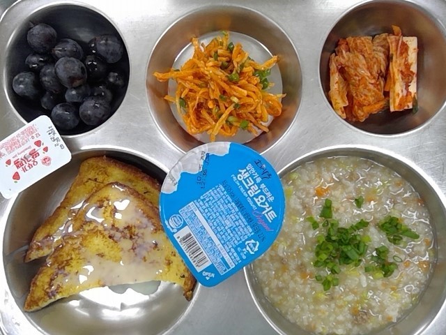 * 조식: 쇠고기야채죽, 연유프렌치토스트, 일미도라지무침, 배추김치, 생크림요거트