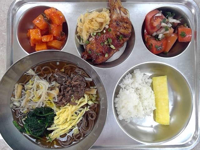 * 중식: 모밀온면, 흰밥, 장각데리야끼구이, 묵은지무침, 토마토마리네이드, 깍두기, 골든파인애플