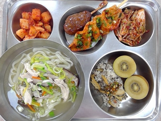 * 중식: 닭칼국수, 톳밥/양념장, 프쿠네, 매콤어묵꼬지, 알배추겉절이, 깍두기, 골든키위