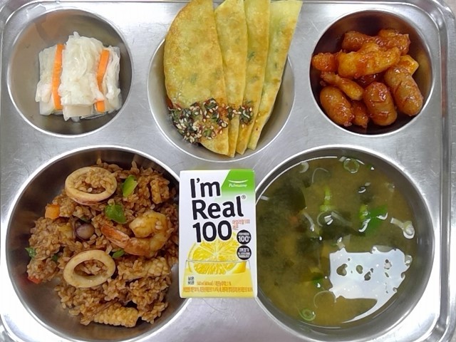 * 석식: 해산물필라프, 펭어버섯된장국, 소떡강정, 납짝만두와 양념장, 백김치, 래몬주스
