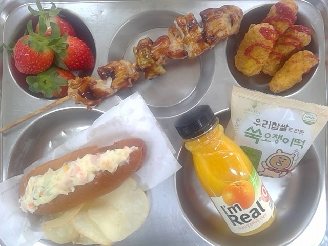 * 중식 감자사라다빵, 치킨꼬지, 파닭, 쑥오쟁이떡, 카사바칩, 딸기, 리얼오렌지주스
