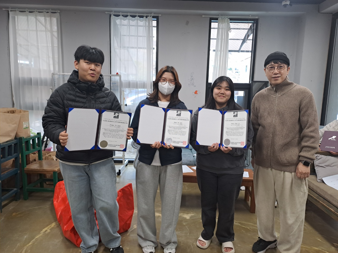 2025학년도 LTI 전문심화강좌 바리스타반 학생 8명이 한국바리스타산업진흥원의 카페바리스타 2,3급 자격증을 취득했습니다.