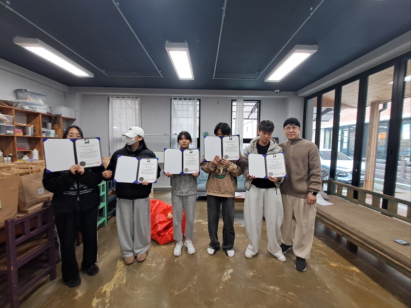 2025.12.16. 14:00 작업장에서 자격증 수여식을 가졌습니다. (2급 3명, 3급 5명)