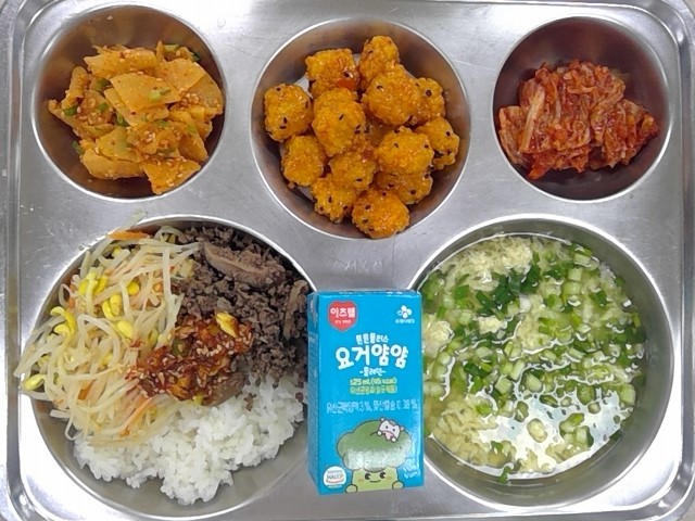 * 조식: 쇠고기콩나물비빔밥, 계란실파국, 팝콘치킨, 꼬들단무지무침, 배추김치, 유산균음료