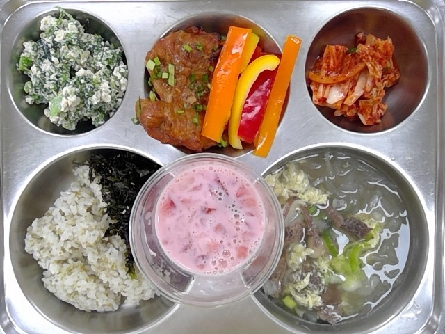 * 중식: 차조밥, 한우갈비탕, 광양식닭구이, 삼색파프리카/쌈장, 브로콜리두부무침, 김자반, 배추김치, 딸기라떼
