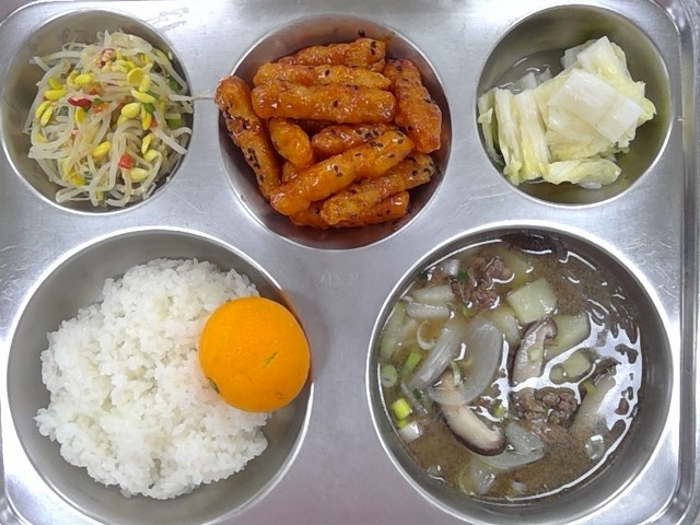 * 조식: 흰밥, 쇠고기감자맑은국, 강정탕수육, 콩나물무침, 백김치, 귤